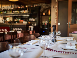 Sur une nappe à carreaux, les « lyonnaiseries » (plats typiquement lyonnais) se succèdent. Andouillettes, salade lyonnaise, tarte à la praline… La promesse d’un repas copieux arrosé de vins du Beaujolais ou de Côtes du Rhône !